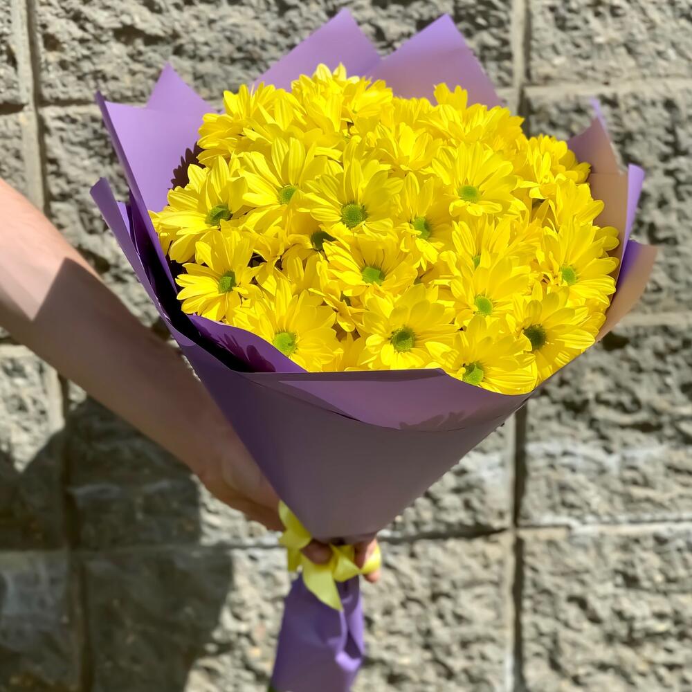 Букет из 7 желтых хризантем в оформлении в Иннополисе
